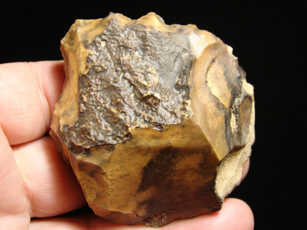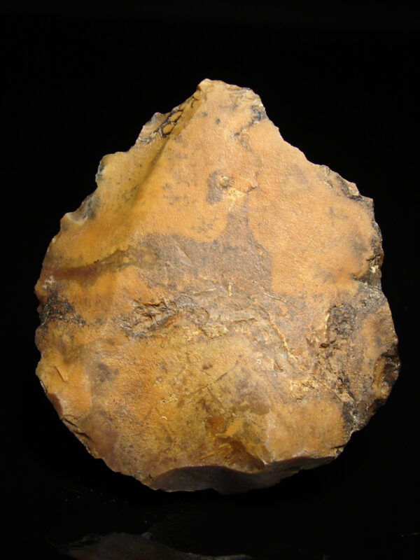 Kamenná industrie vyrobená H. sapiens. Velmi krásné jádro, opracované do kulatého tvaru. Nástroj sloužil nejspíš jako škrabadlo pro zpracování kůží. Na vypouklé straně nástroje je zbytek původního povrchu kamene. Artefakt má naprosto fantastickou patinu, způsobenou abrazí pouštním pískem!